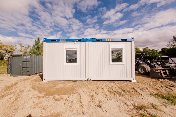 De schakelunit van 6×3 meter is een veelzijdige bouwsteen voor het samenstellen van grotere tijdelijke of semipermanente gebouwen. Door meerdere units modulair te koppelen, ontstaat er snel een functionele ruimte die dienst kan doen als kantoor, klaslokaal, kantine of verblijfsruimte. Elke unit is volledig geïsoleerd en standaard uitgerust met elektra, verlichting en verwarming, en optioneel met airco. De robuuste constructie is onderhoudsarm en geschikt voor langdurig gebruik. Dankzij de flexibiliteit in opstelling en afwerking is dit een ideale oplossing voor projecten met schaalbare ruimtebehoefte.
