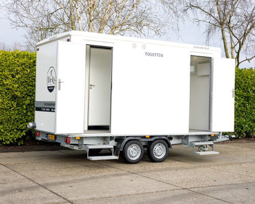 Krachtige toiletwagen met vacuümsysteem, ideaal voor grotere evenementen.
